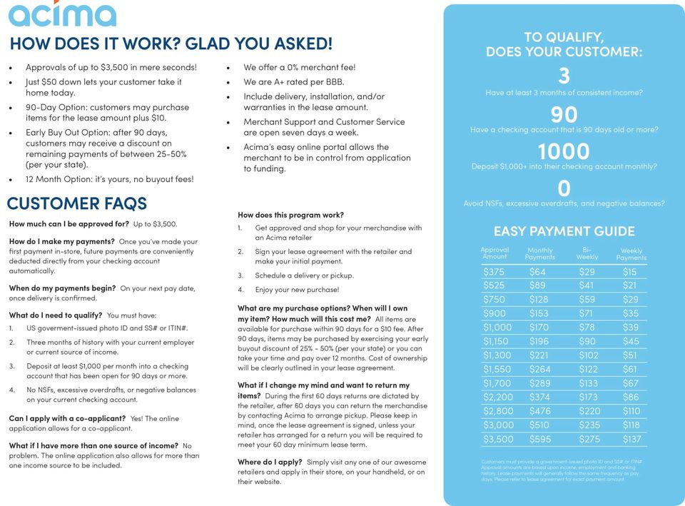 - 99 Gaurantee Approval. Acima Credit Customer Service Phone Number 800 742-1789 Email Help Center. Our proprietary technology enables customers.